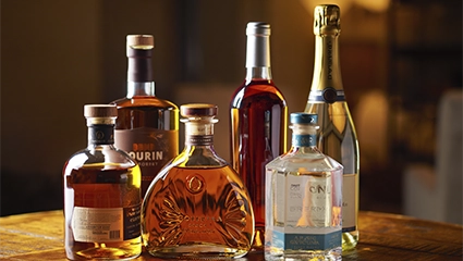 Бутылка алкоголя на фоне человека
